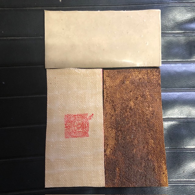 右側はエルサレム隕石(ジーザス)のエネルギーによって宇宙エネルギーのチャンネルに合わせる手助けをするパッドです。その裏に謎の血液と牛黄を練り込んだパッド(ババから情報を得る)を合体させ、魔が寄り付けないようにして、ジーザスの局に合わせます。写真左の上下は、裏と表です。