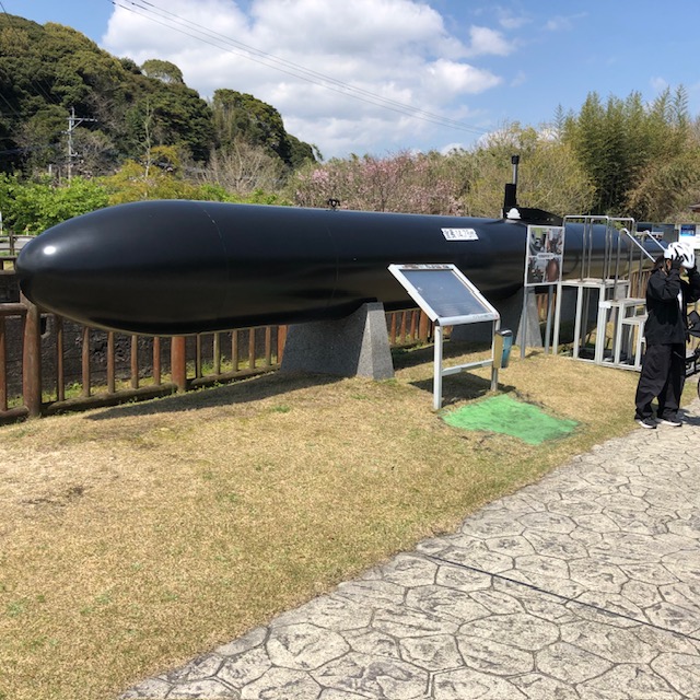 日出町(ひじまち・・・ひいずるまち・・・・太陽がでる町)と言う所に、人間魚雷回天の基地の後に公園があります。意外と大きいのにびっくりです。終戦末期、若者は片道だけの燃料と爆弾を積み、相手の戦艦に体当たりする寸前で終戦を迎えました。